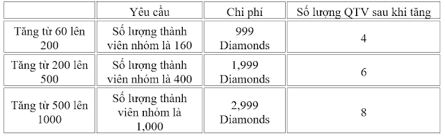 Đã thêm tính năng tăng giới hạn thành viên. Tính năng này có thể được truy cập bởi chủ sở hữu và quản trị viên Nhóm trong màn hình quản lý Nhóm.