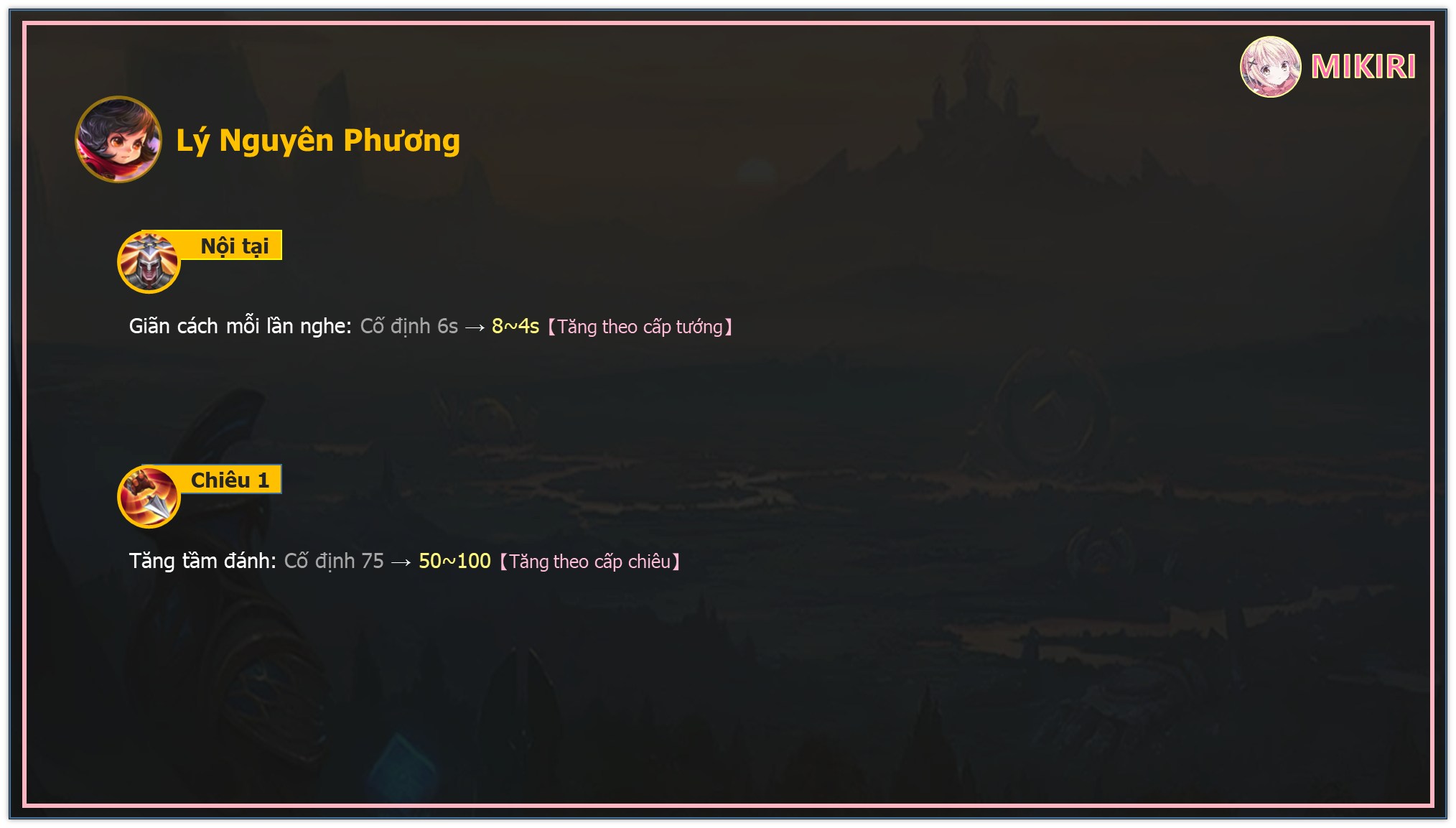 Không Không Nhi là tướng mới sẽ ra mắt trong phiên bản Vương Giả Vinh Diệu mùa S39, mang đến một phong cách chơi chiến thuật đầy bất ngờ. Với khả năng đổi vị trí với phân thân và cướp trang bị của kẻ địch, cô có thể dễ dàng làm rối loạn đội hình đối phương. Chiêu cuối của tướng này không chỉ giúp gia tăng sát thương mà còn tạo ra nhiều cơ hội cho đội, khiến cô trở thành một tướng cực kỳ linh hoạt và khó đoán.