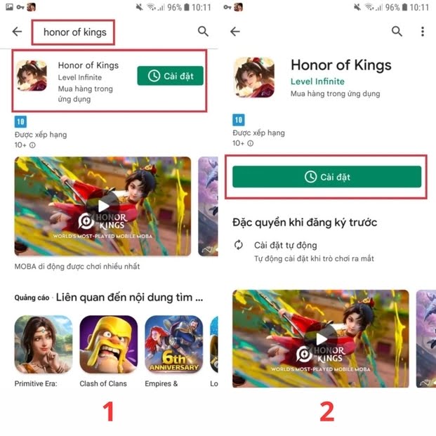 Bước 3: Tìm kiếm và cài đặt Vương Giả Vinh Diệu.