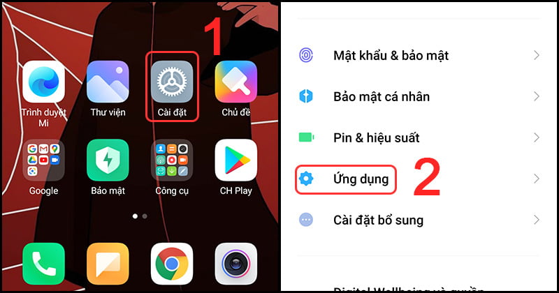Chọn cài đặt -> Ứng dụng