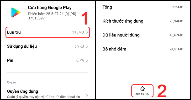 Bước 1: Xóa dữ liệu của Google Play