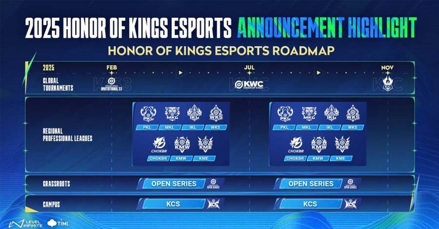 Bảy giải đấu chuyên nghiệp sẽ đóng vai trò làm bàn đạp cho các giải đấu cấp cao hơn. Các khu vực tham gia bao gồm Philippines, Malaysia, Indonesia, Brazil, Major East, Major West và Wildcard Kings League. Bên cạnh đó, trò chơi cũng tập trung phát triển các giải đấu cấp cơ sở như Open Series và Campus Series (KCS) nhằm mang đến cơ hội thi đấu chính thức cho các game thủ nghiệp dư.